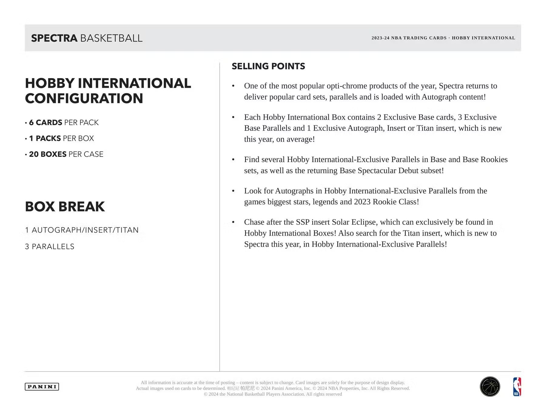 2023-24 Panini Spectra Basketball International Hobby Trading Cards