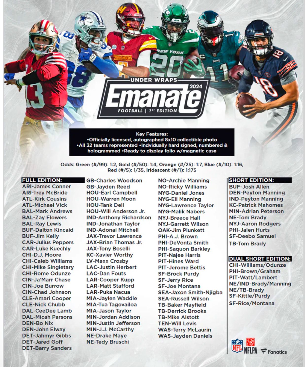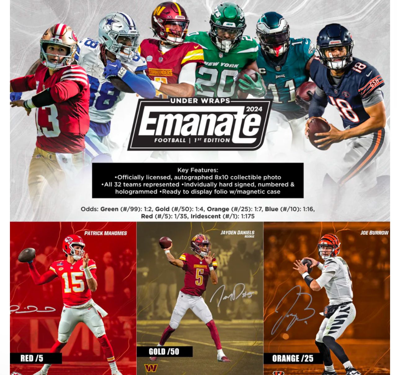 2024 Fanatics Under Wraps Emanate Football Autographed Photo