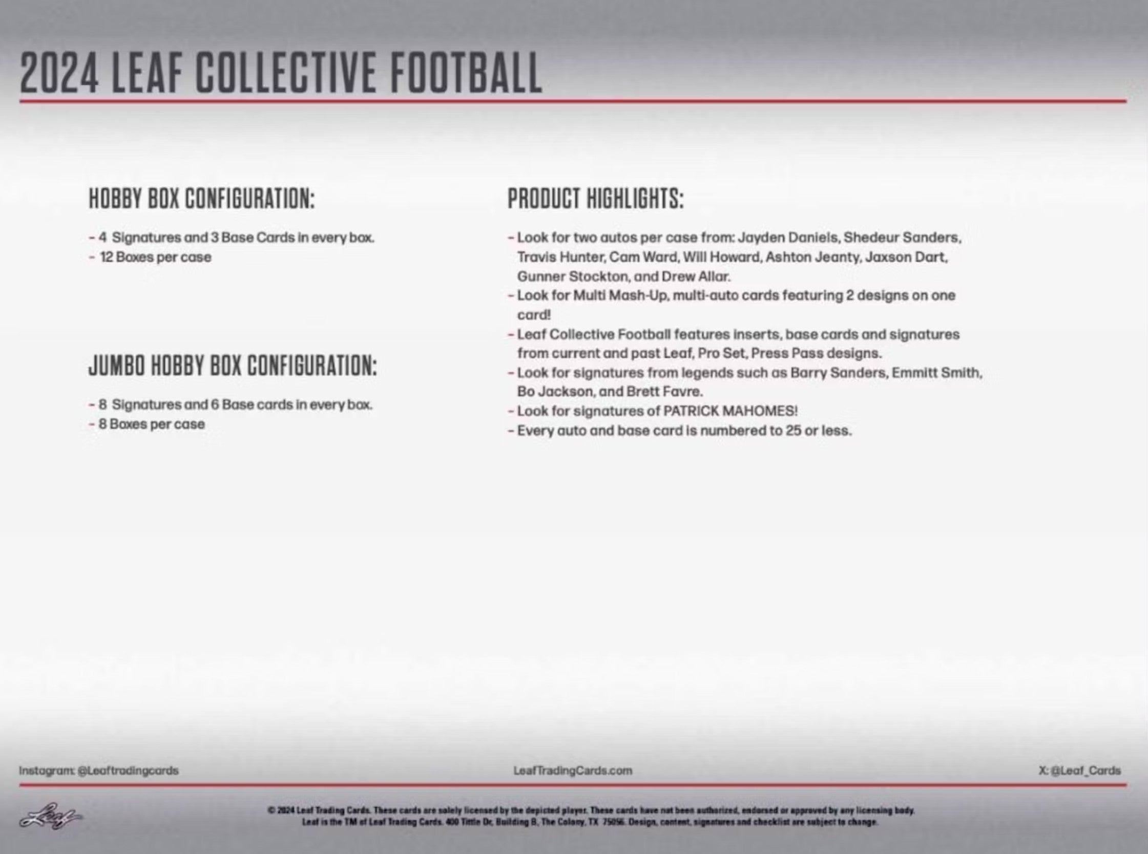 2024 Leaf Collective Football Hobby Trading Cards