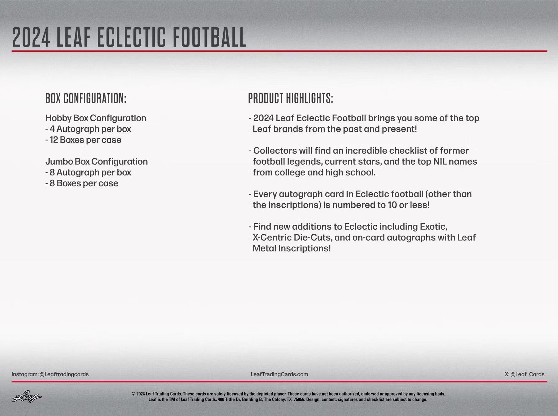 2024 Leaf Eclectic Football Hobby Trading Cards