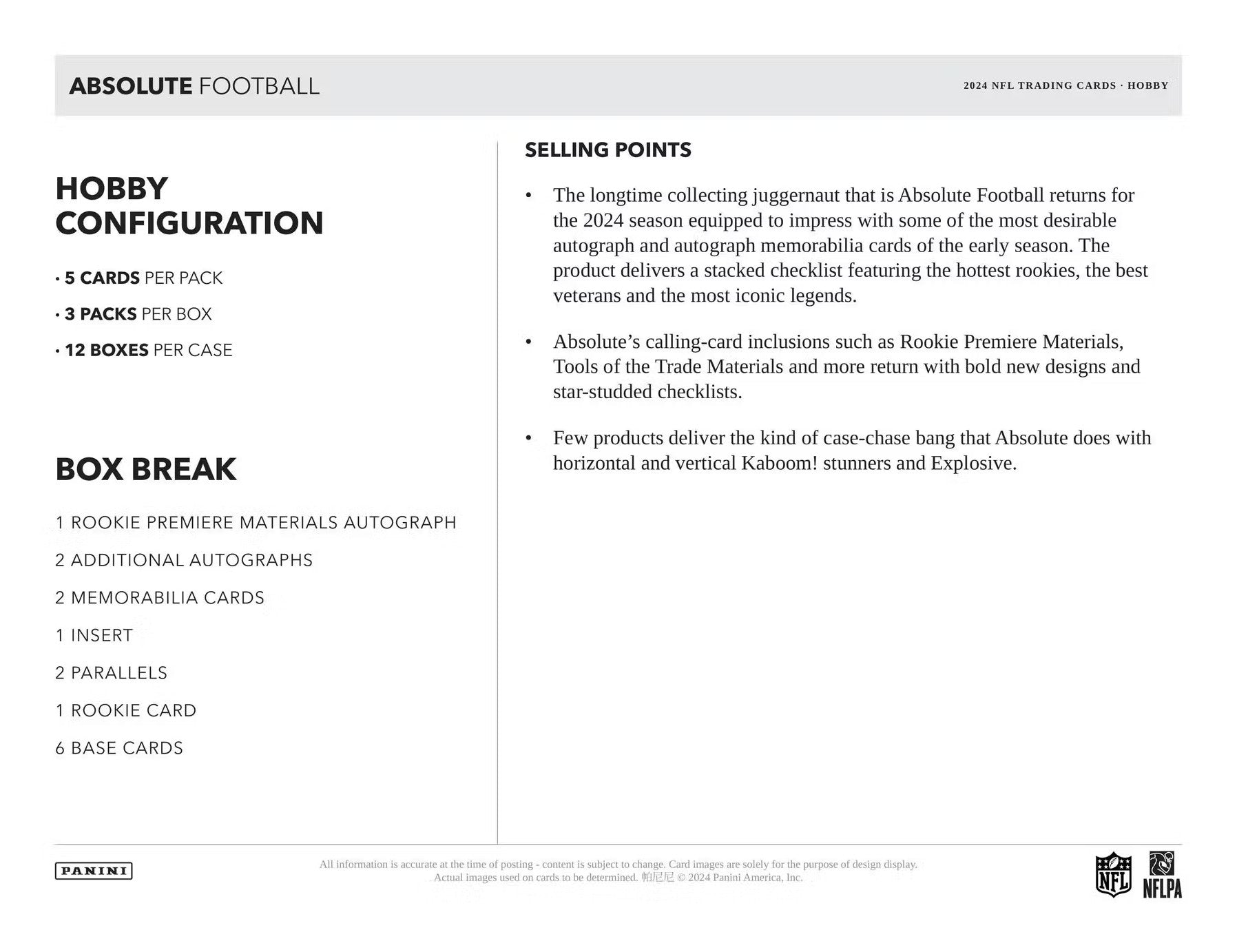2025 Panini Absolute Football Hobby Trading Cards