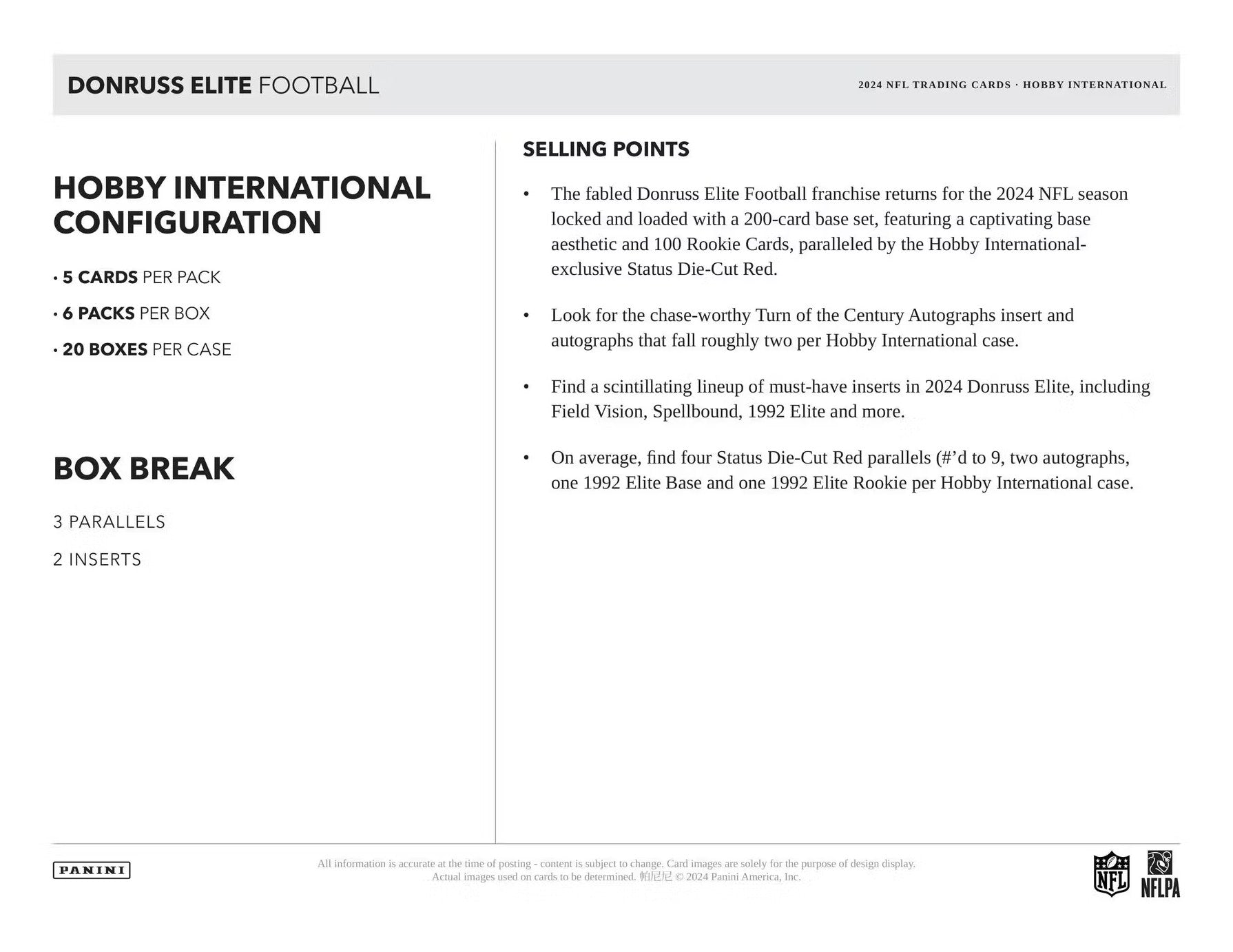 2024 Panini Donruss Elite Football International Hobby Trading Cards