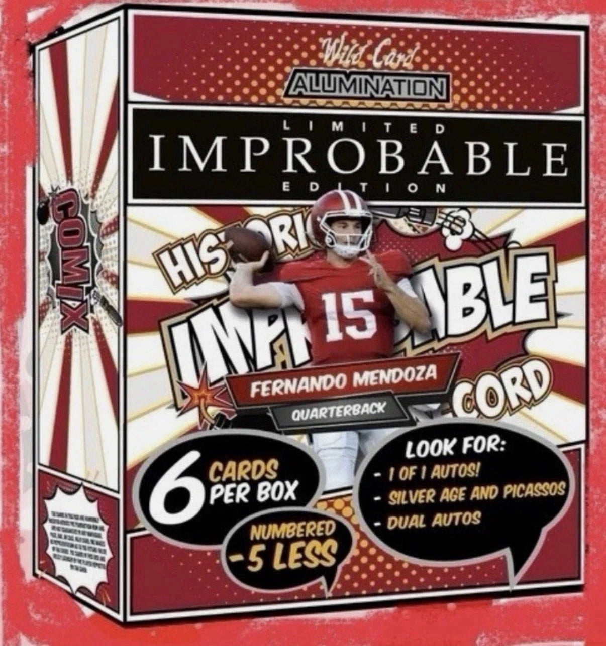 2025 Wild Card Alumination Fernando Mendoza Comix Improbable Football Hobby Trading Cards LV