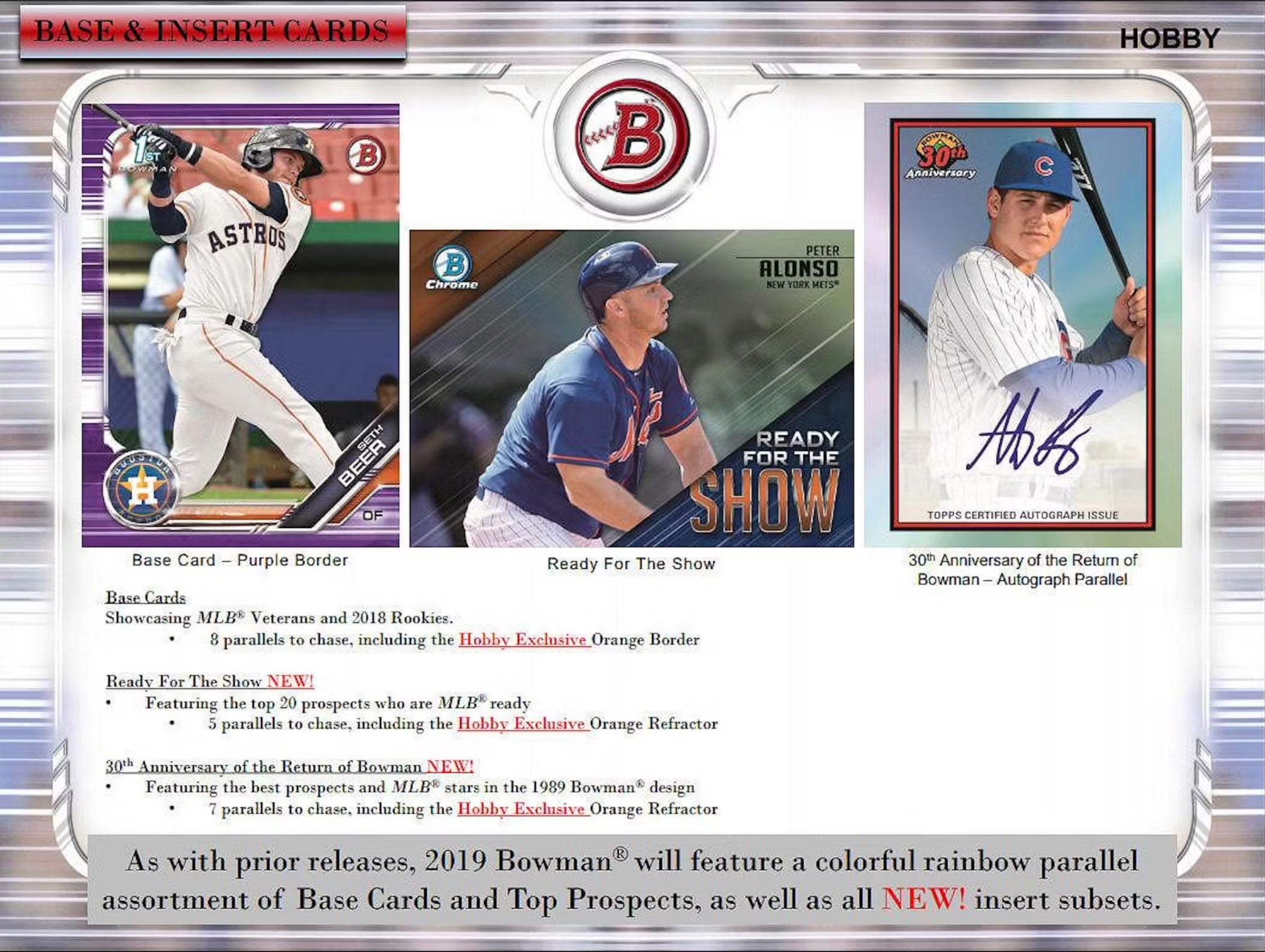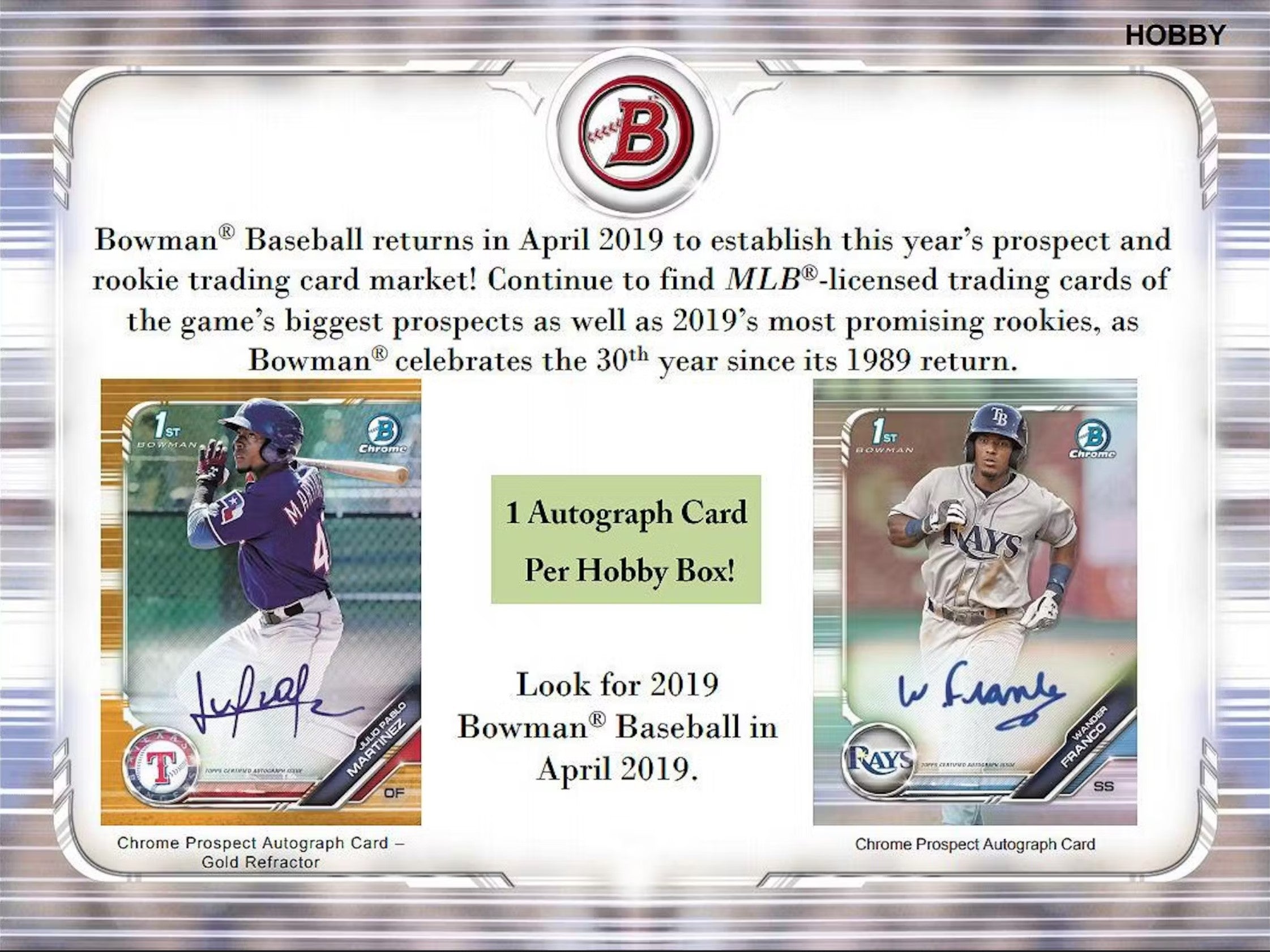 2019 Topps Bowman Baseball Jumbo Hobby Trading Cards