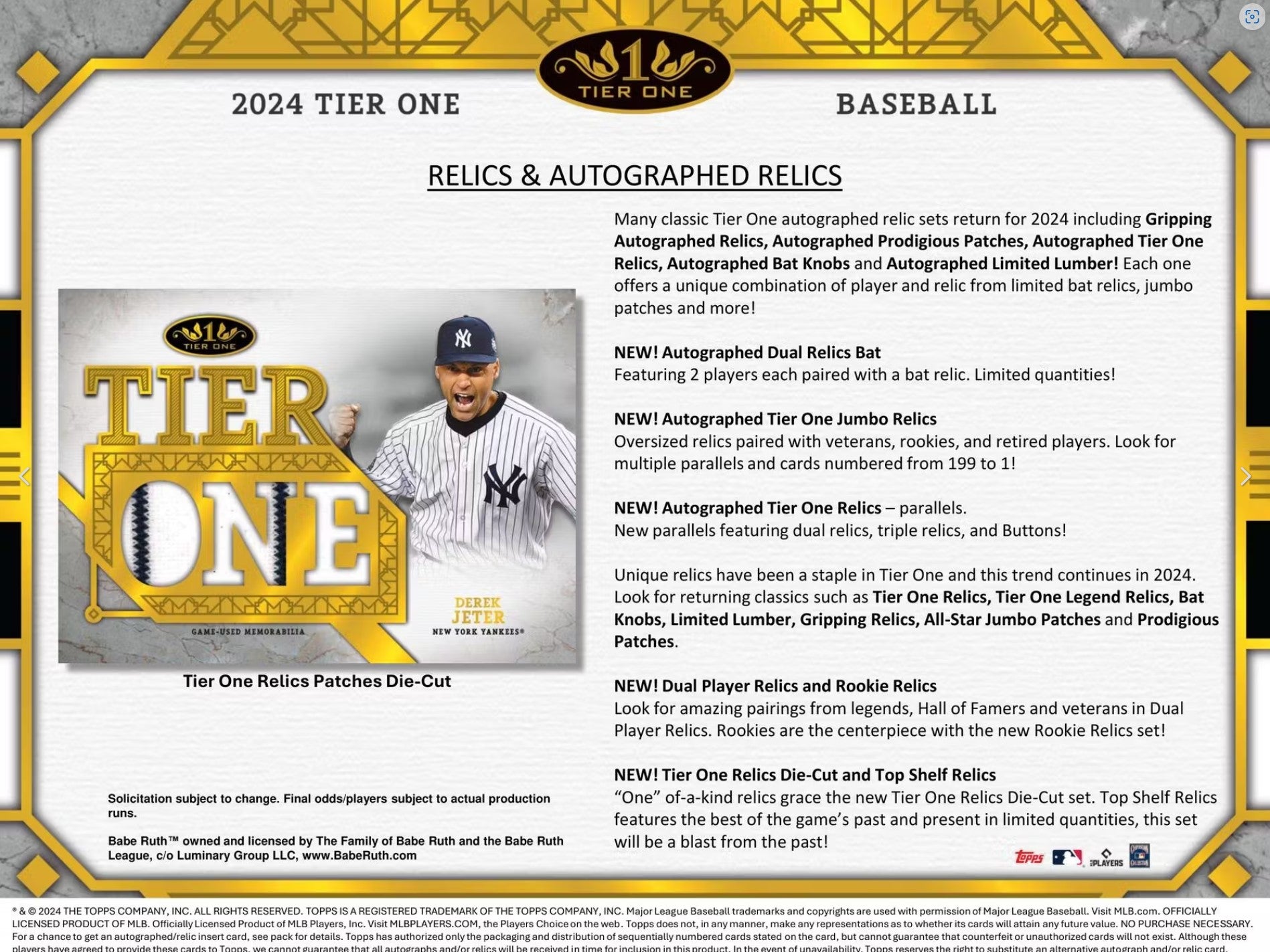 2024 Topps Tier One Baseball Hobby Trading Cards