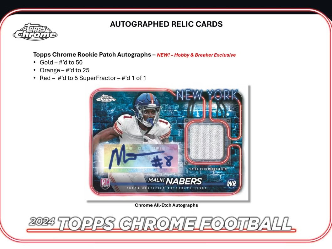 2024 Topps Chrome Football Hobby Trading Cards