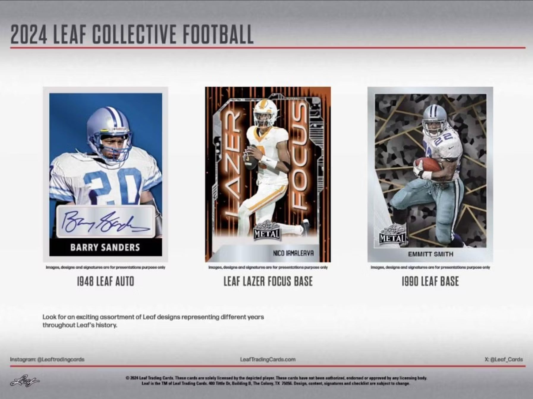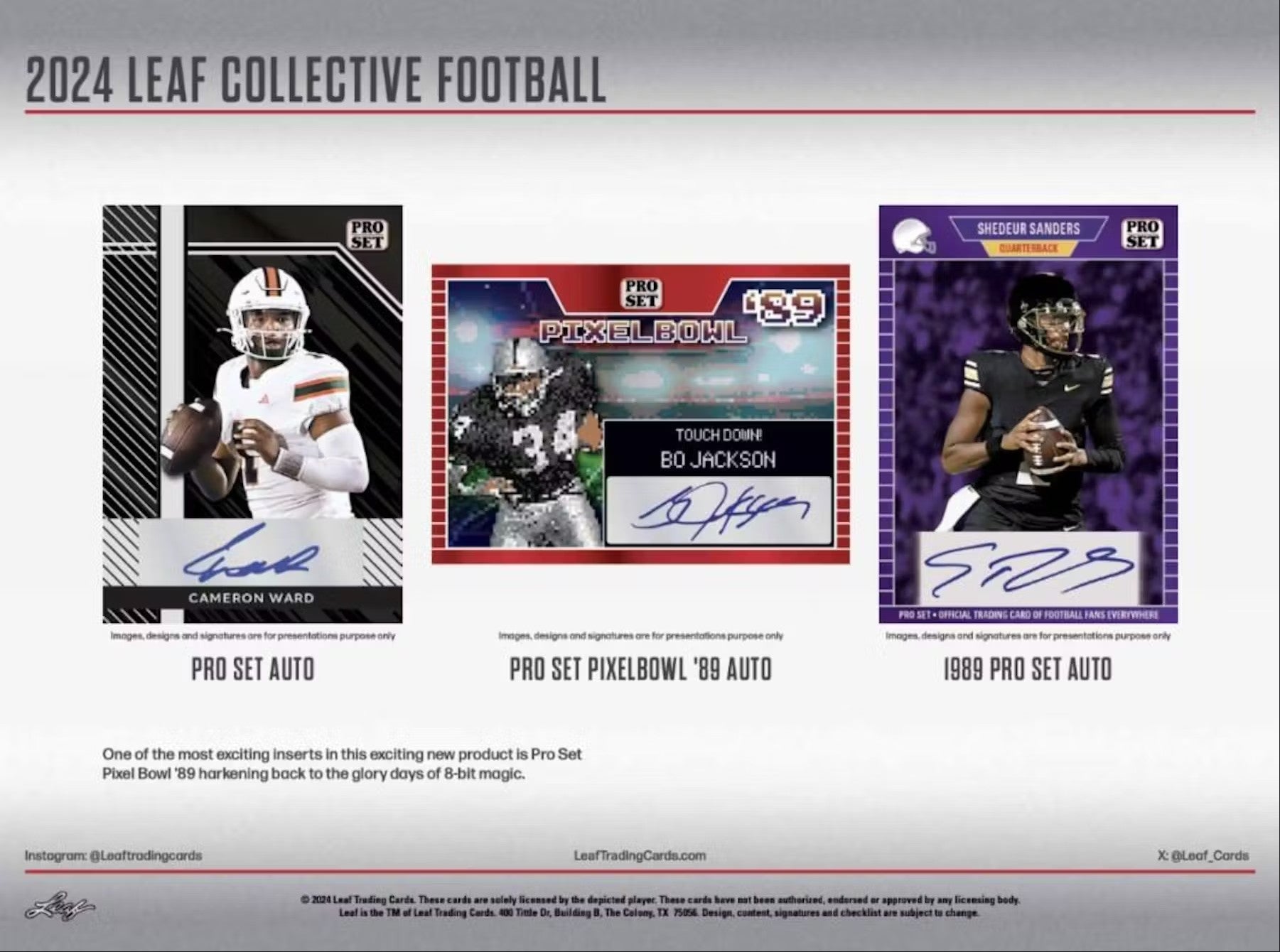 Leaf Collective Football features inserts, base cards and signatures from current and past Leaf, Pro Set, Press Pass designs.