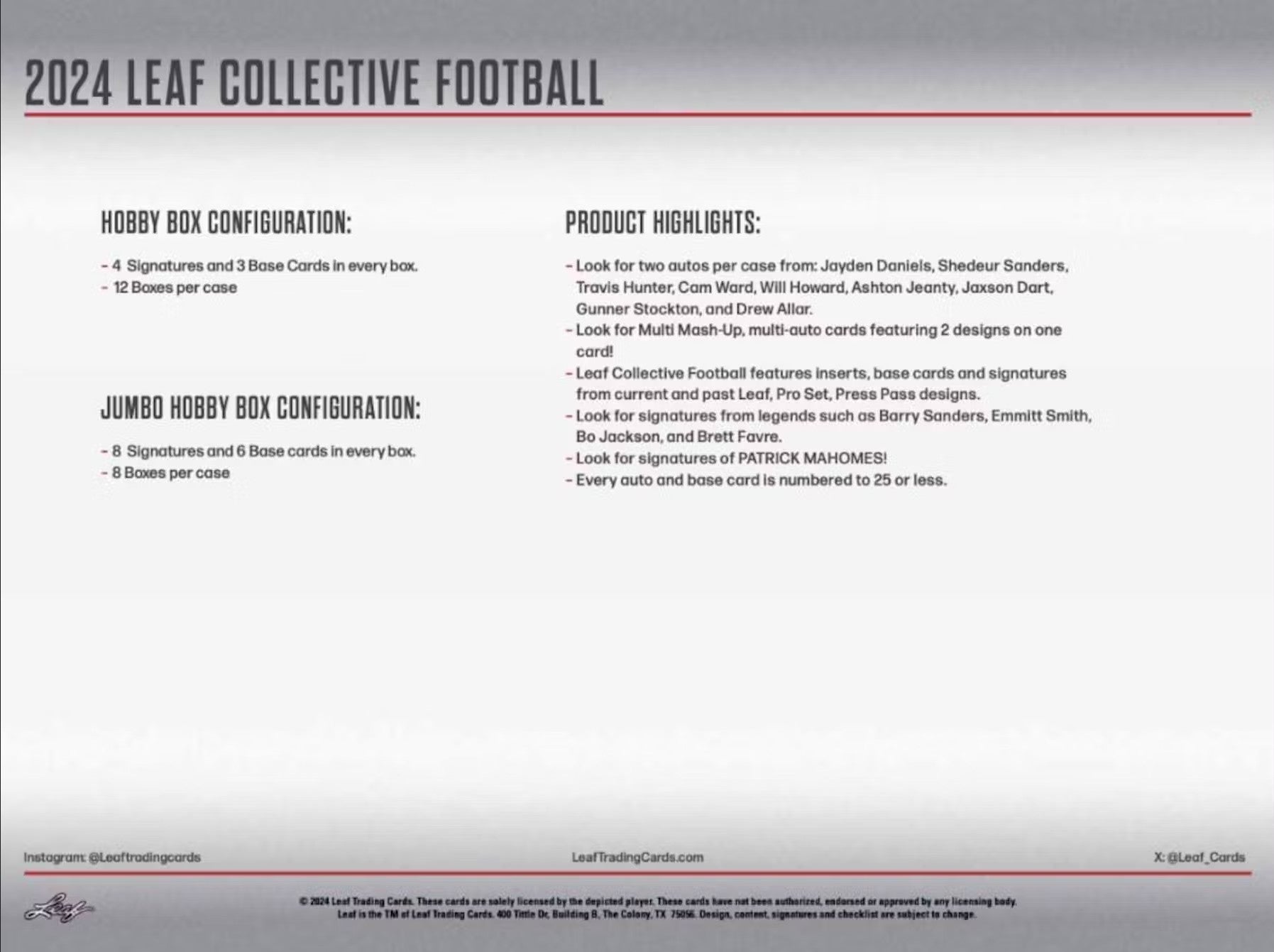 2024 Leaf Collective Football Hobby Trading Cards